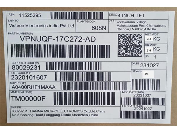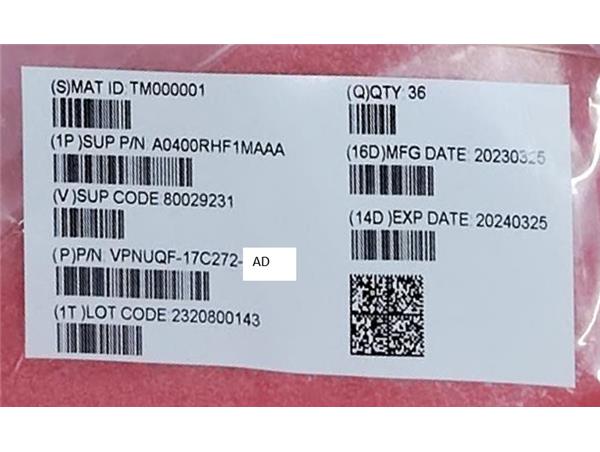 to VPNUQF-17C272-AD ,all design is same | | Customer (or Receiving Location) Notes | | | | Master Label Sample Photo | Inner Label Sample Photo | | |  |  | | |